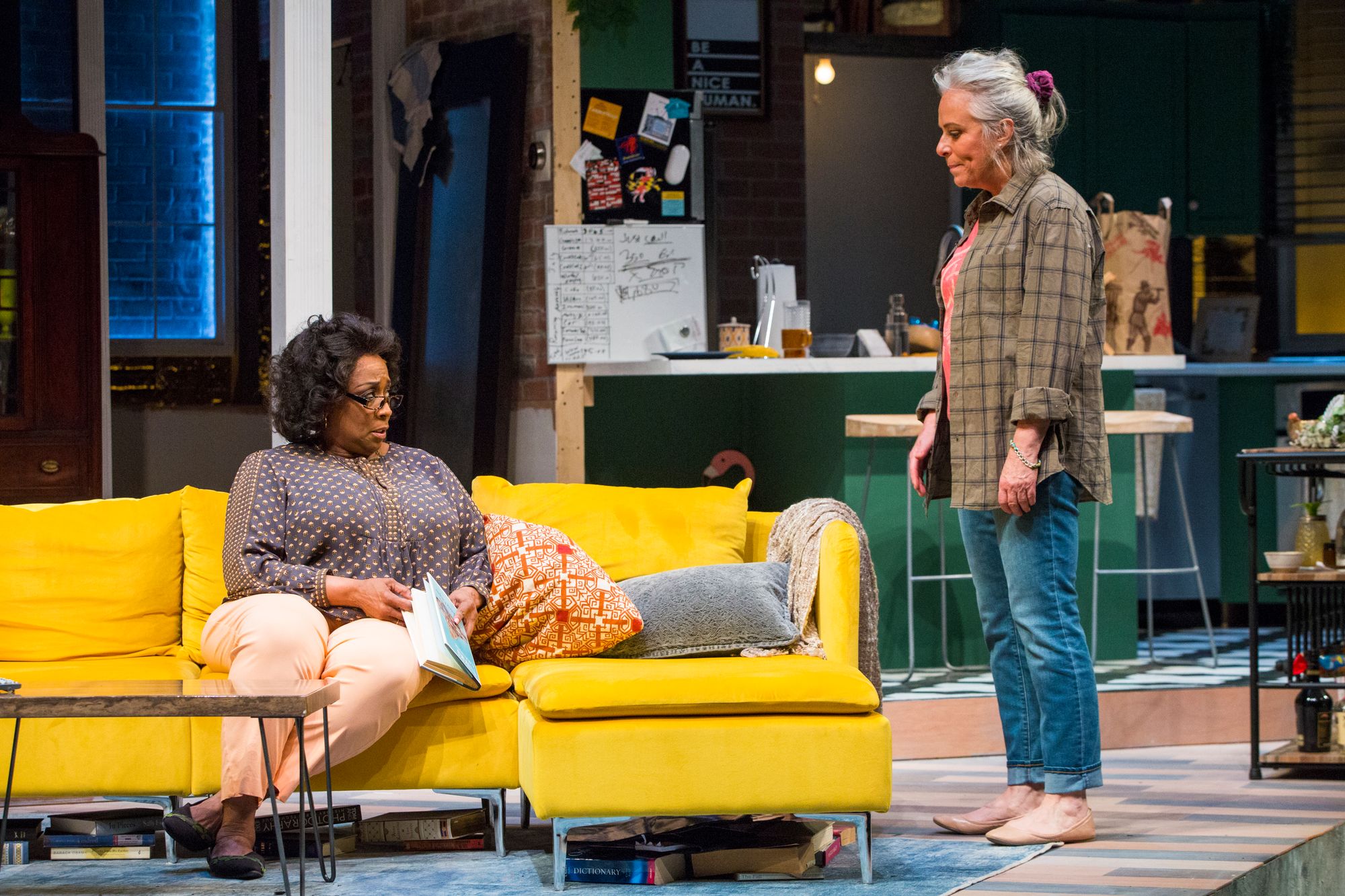 As we were nearing Opening Night at Folks, the assistant set designer, Paloma Locsin, asked me if I wanted to include one of my books under the couch, as a kind of Easter egg. I said yes, that would be fun. Then I had an internal spiral wondering if the characters in the play would have read Here for It or have any idea who I was. The jury is still out but I decided that one of their friends gave it to them for Christmas and they promptly tossed it under the couch. This is how I keep myself sane.