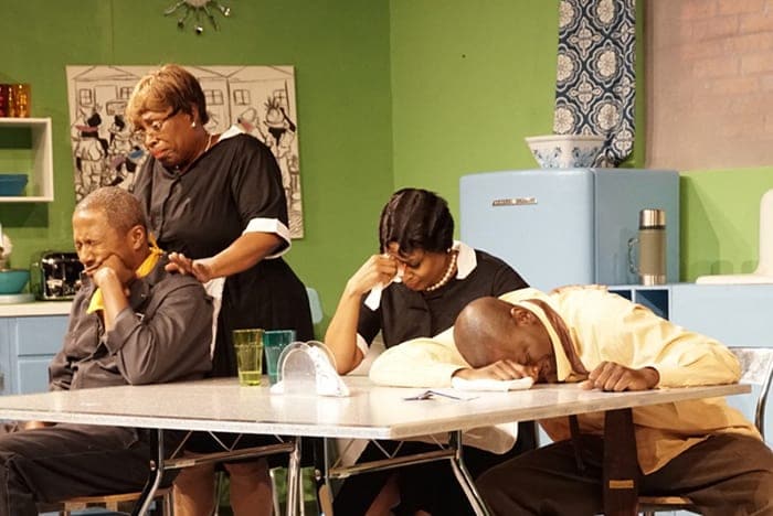 We’ll see. Anyway, my high school did Happy Ending and I feel like it was at an assembly rather than part of an evening. I have the distinct memory of “acting” at 10:30 am. It has a cast of four and all of the parts are for Black performers and I am fairly certain that’s why we did it. Three of six the Black kids in my grade were into theater, myself included; I seem to recall us lobbying a fourth friend to be in the play. For the culture! Maybe we did this as part of a Black History Month assembly? That seems pretty likely, which is hilarious because Happy Ending is about two maids who are scamming their white employers. FOR THE CULTURE! I played Arthur, the husband of one of the maids and I remember working a long time on trying to capture the physicality of a 40-year-old man, which turned to be a George Jefferson impression by way of the Kool-Aid Man. Acting!