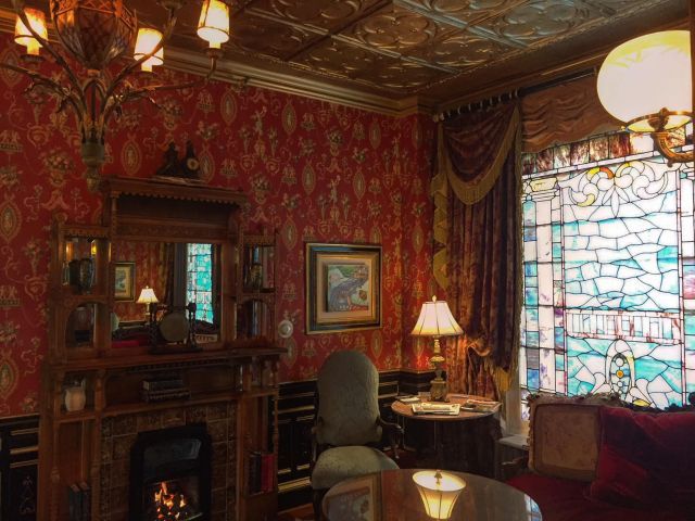 This B&B used the be a mansion built by the owner of a logging company in the 1800s. It's been lovingly refurbished in the most extra way possible. There is stained glass EVERYWHERE, Tiffany lamps and chandeliers abound, intricate woodwork is nestled into every crevice and corner. This design is beyond. The past was so gay.