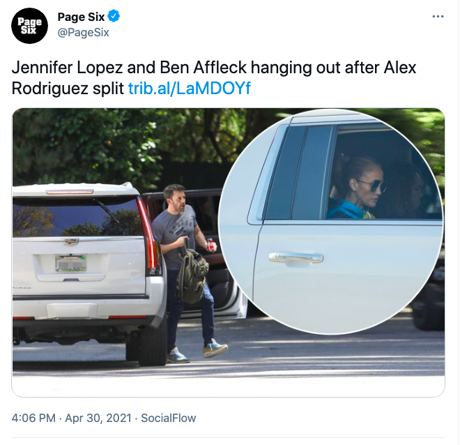 In conclusion, one of the things I can't get over about this new Jennifer news is that neither JLo nor BAffle have a project to promote right now so I don't understand why they're making news. I see Ben Affleck getting out of a white Escalade with a backpack like he's getting dropped off at carpool and I'm like "Okay, what am I supposed to purchase for this information?" As someone who had a doctors note that says I need more attention than the average person, I understand wanting to getting a little tabloid hit just to feel something, but this is a lot of trouble to go to.
