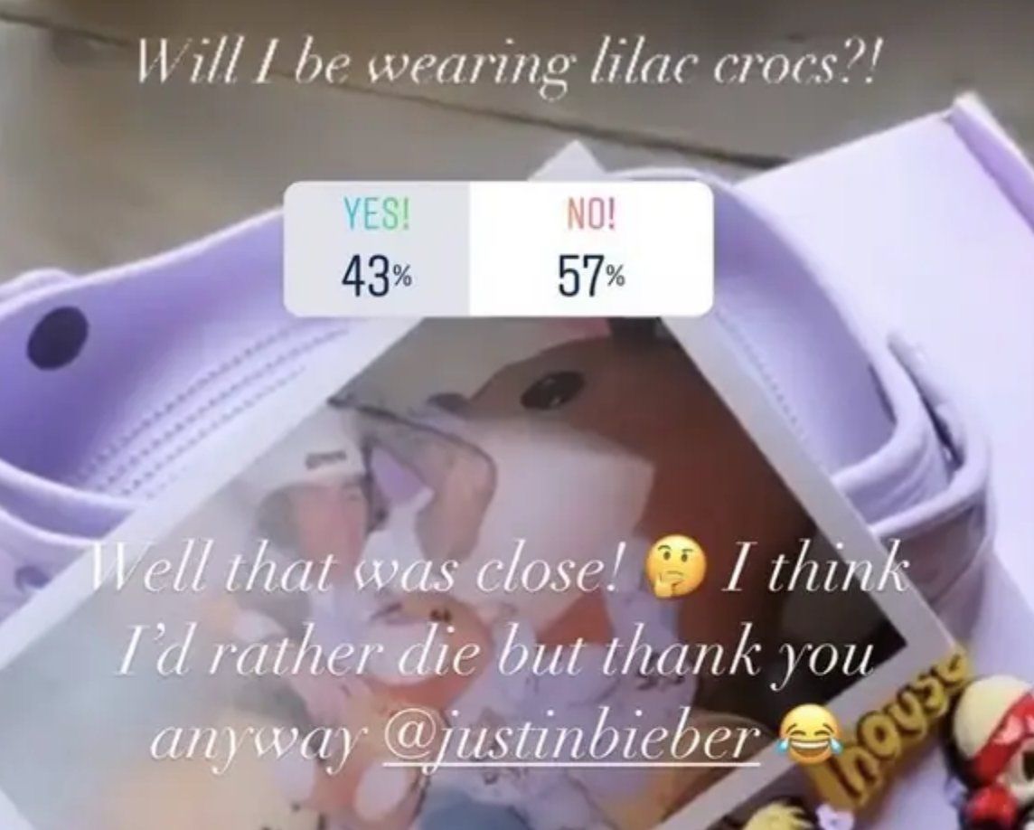 In any case, I am obsessed with the fact that Justin Bieber sent a pair of his Crocs to Victoria Beckham and she was didn't just throw the box away, she put up a poll on her Twitter, then told him "I'd rather die than wear these". AND SHE TAGGED HIM. Iconic RSVP, to be honest.
