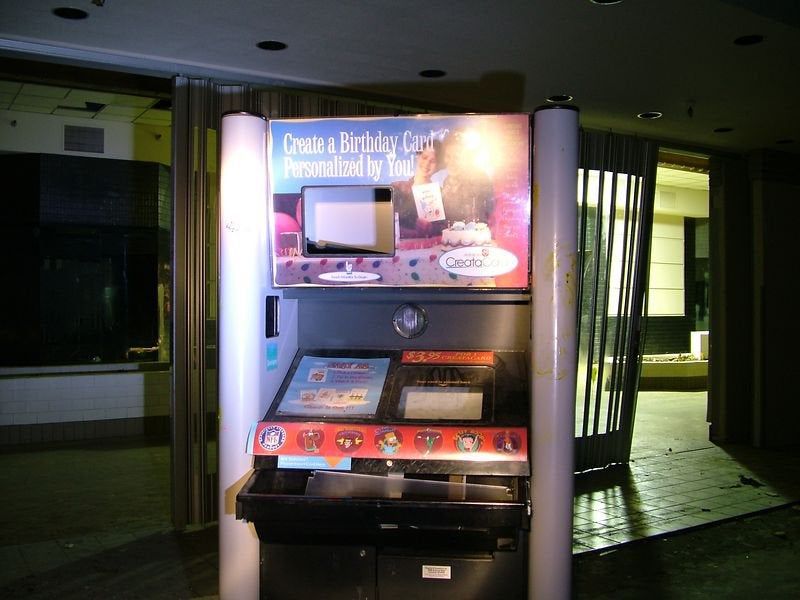 To be fair, there was that halcyon moment in the 90s when the industry pivoted from "folded" to "a printout that comes from a machine the size of a Hummer". Do you remember those Make-Your-Own-Card machines that looked like arcade games that had been Super Sized? As someone with a deeply unhealthy obsession with greeting cards and the greeting card industry (see: this newsletter) I could not get enough of them even though I had a strong suspicion that they were more gimmick than substance and that perhaps the concept of "printing something out" would not always be so impressive to me. That said, as the world's oldest millennial I have never encountered a home or office printer that I have been able to use without strife and to date my most consistently successful print-on-demand relationship was with this behemoth: