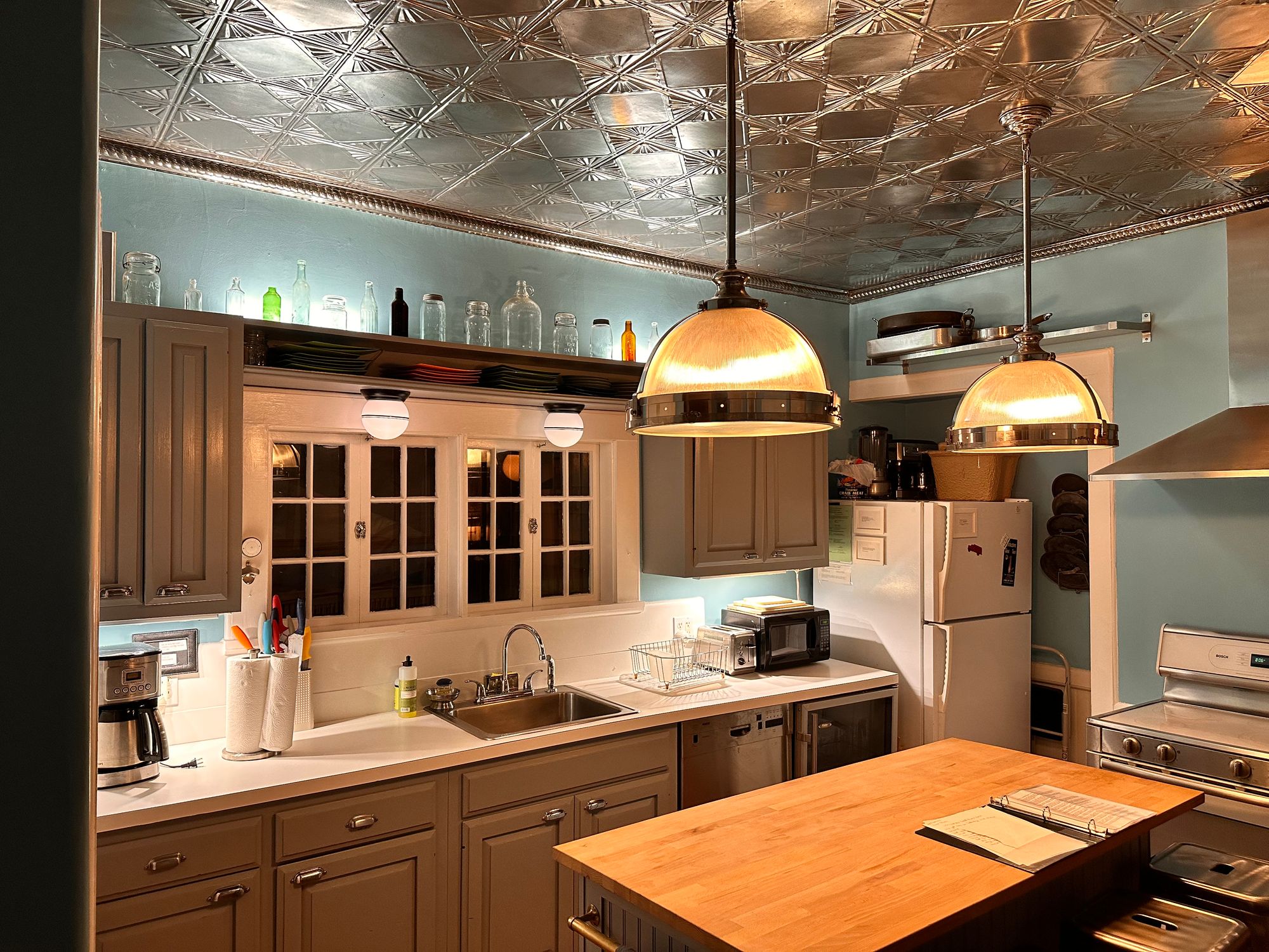 The kitchen is nothing especially extraordinary, structurally--sort of a Jr. Nancy Meyers, situation. But it's one of those vacation rental kitchens that has absolutely everything, culinarily, that you could ever need. Stacks and stacks of big bowls and gigantic pots perfect for ears of corn and crustaceans of various sizes, enough kitchen knives to make an entire series of Scream movies, enough place settings to host a state dinner. It's one of those houses that does not have a single useable food item--I found a sesame oil that expired in 2015--but does have an espresso machine and a stand mixer. And what does one do when presented with an espresso machine, a stand mixer, and one of those gigantic butcher block cutting boards that weighs more than a small child. One cooks!