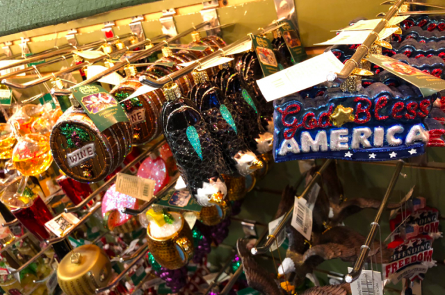 The Wine Mom section of ornaments is right next to the God Bless America ornament section, which is both a metaphor and an answer to a question. There was a tiny section with black Santas, next to the Mexican ornaments, which... sure, okay. It was so much and we had a great time sorting through it all (while I posted photos of Nativity Sets in which the wise men were, inadvertently, done up like drag queens).