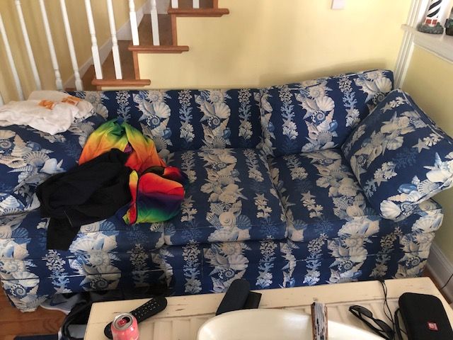The thing that always gets me most of all is that these houses seem to be decorated with complete seriousness. I mean, there's a wit involved (there are always at least three plaques that read "LIFE'S A BEACH!" after all.) But though beach houses are the epitome of camp they never quite seem aware of that fact. I love that. I enter every beach rental like a Camp Investigator on an assignment. You know, a Camp Investigator--like one of those paranormal investigators in a horror movie, the kind that has a spectrometer or something to detect ghosts, and is also a little psychic and seems to be very well-versed in the ironclad rules of the OTHER WORLD ("A ghost absolutely cannot pick up anything over 50 pounds. Everyone knows this.") That's me, except for camp. I do this in everyone's house, but beach houses are where my campometer really goes off the charts. I open the screen door, come face to face with an entire pullout couch done up in a seashell pattern and I turn to my companions and whisper, wild-eyed, "The camp presence is very strong here. Stand back, please."