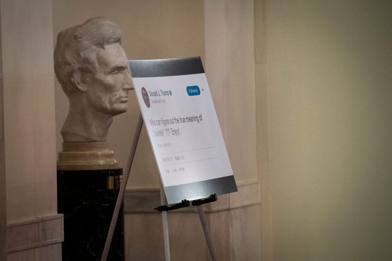 Some staffer really was tasked with taking a screenshot of a tweet that is, objectively, dumb, sending that screenshot to the White House print office, specifying that this screenshot needed to be enlarged to poster size and mounted on card stock like it's a presentation at a high school science fair. They did this in the White House. This was someone's job. They had to requisition an easel.