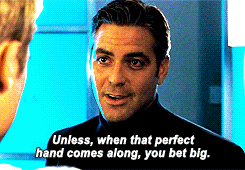 I think this also works in regular life, as well. I thought what I wanted was a bunch of friends who want to scream about Broadway shows and restaurant menu prices with me, but perhaps what I really want is a team of associates who all bring something different to the table. It’s like a potluck but with people. Except unlike so many potlucks, this one actually has an even distribution of food and not, like, 30 desserts, one entree, a box of spoons and no knives or forks. So, that’s what I’m doing now in my social life. I’m Ocean’s 11-ing, everyone! Let’s rob this casino called life!