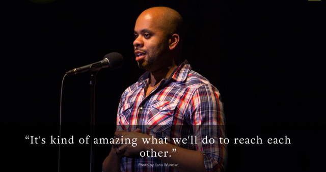 Hosting The Moth StorySlam at The Miracle Theater in Washington, D.C., Thursday, November 1