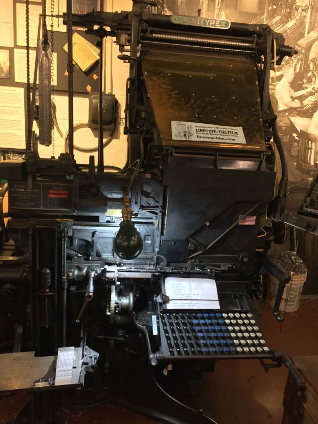 My spirits were lifted, however, by a visit to their print shop. The BMI houses an original Mergenthaler Linotype Machine, an extraordinary, rattling behemoth that replaced the Gutenberg press as the standard for printing for 80 years.