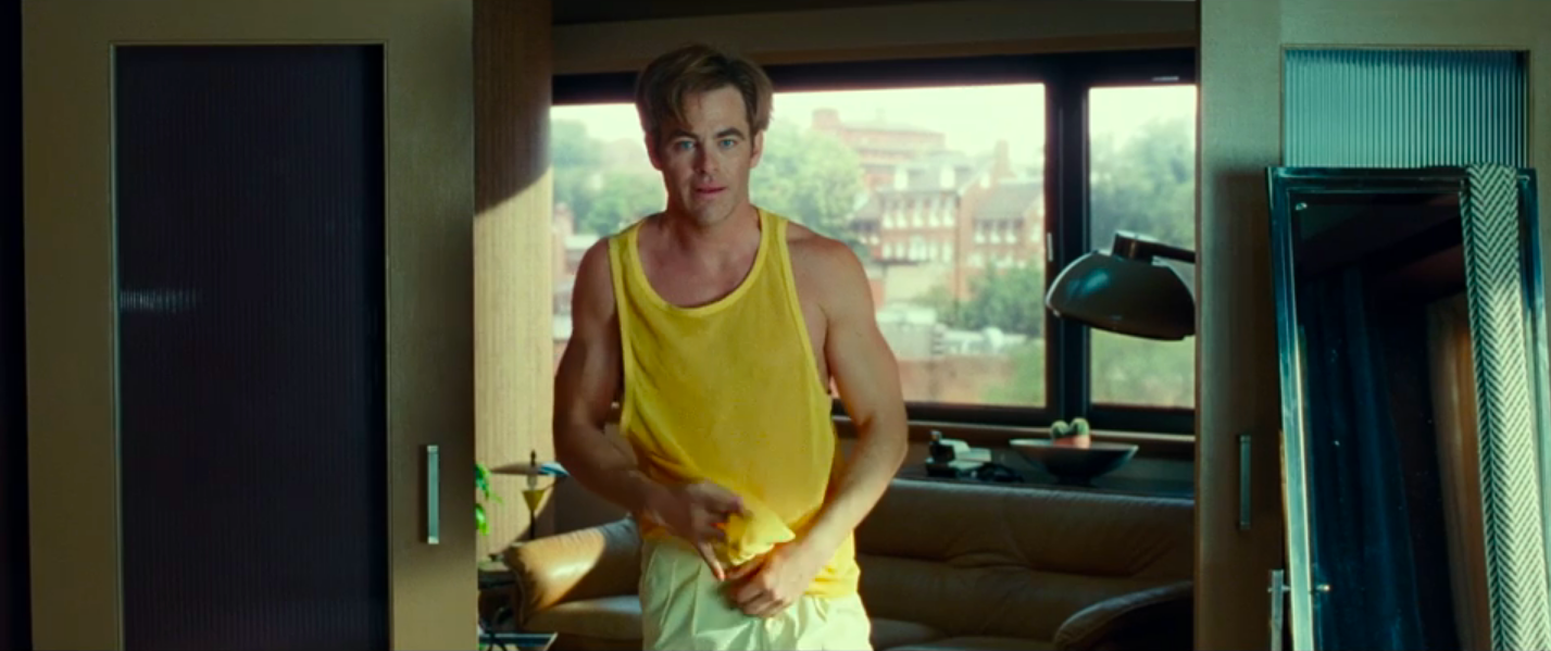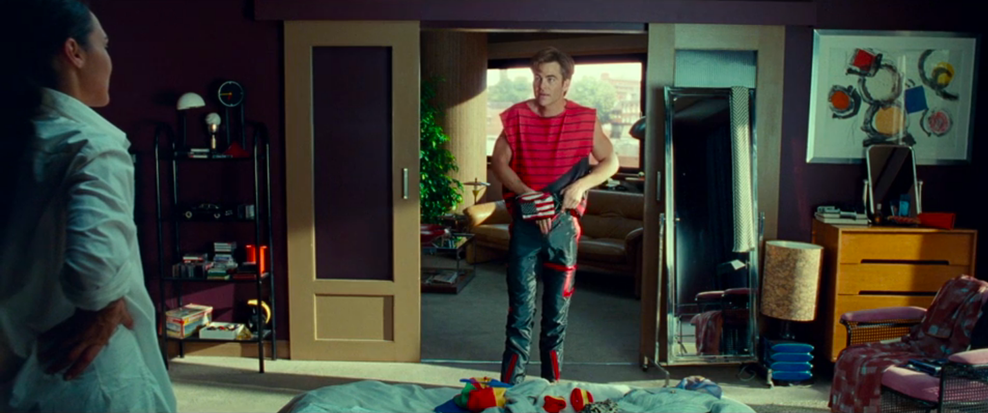 In the montage, Steve keeps popping into the doorway of Fake Steve Trevor’s bedroom with different outfits while Diana sorts through the closet. This would suggest that Chris Pine is stepping into the kitchen (?) to get changed out of modesty despite the fact that he and Wonder Woman just spent the night together. Odd, but he is a man born in 1875 so I guess we’re lucky he’s not calling for his frockcoat so he can go have the local leech collector fix his humors.