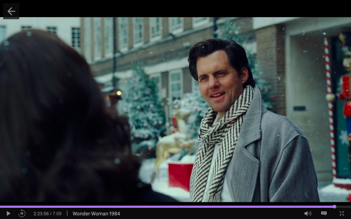 It’s not really a spoiler to say that after the final battle, we catch up with Wonder Woman now starring in a Hallmark movie as she walks through a random Christmas village.