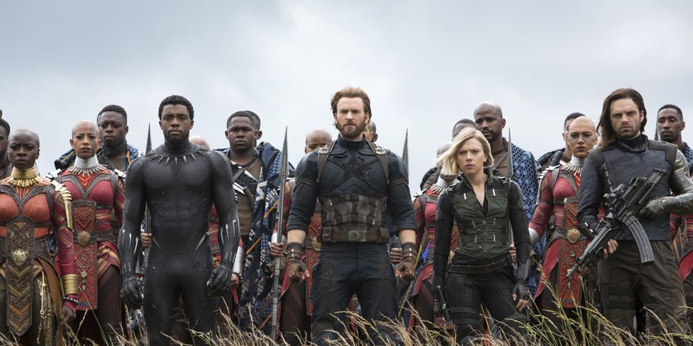 The point is, it felt very intentional that Ryan Coogler cast only darker skinned black people in Black Panther because it told a visual story of what a country looks like without colonization. The logic goes, if European slave traders never reached Wakanda, there would be no light-skinned people in the country. It's true that its totally possible that some Saharan Africans reached Wakanda at some point in its history; I'm not really sure what their intra-Africa immigration policy is. If someone could text Lupita Nyong'o and ask her, that'd be great. But I, personally, found the sight of an all dark-skinned cast to be really beautiful and reassuring. I understood it and its implications. I don't think the Russo Brothers, who directed Avengers: Infinity War, had that same awareness, which is an interesting thing to think about. It's not a critique of them, it's just an illustration of how our contexts and our understanding of the world shape what we put out into the world and the lens through which we see it.