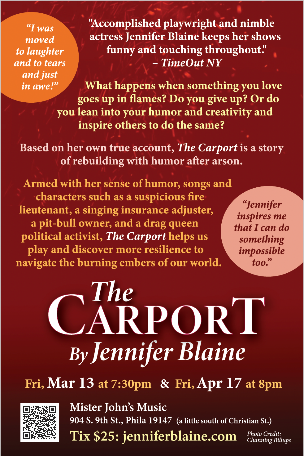 If you're in Philly--or can get to Philly--please come check out Jennifer Blaine's new solo show. Arson, comedy, what more could you want?!