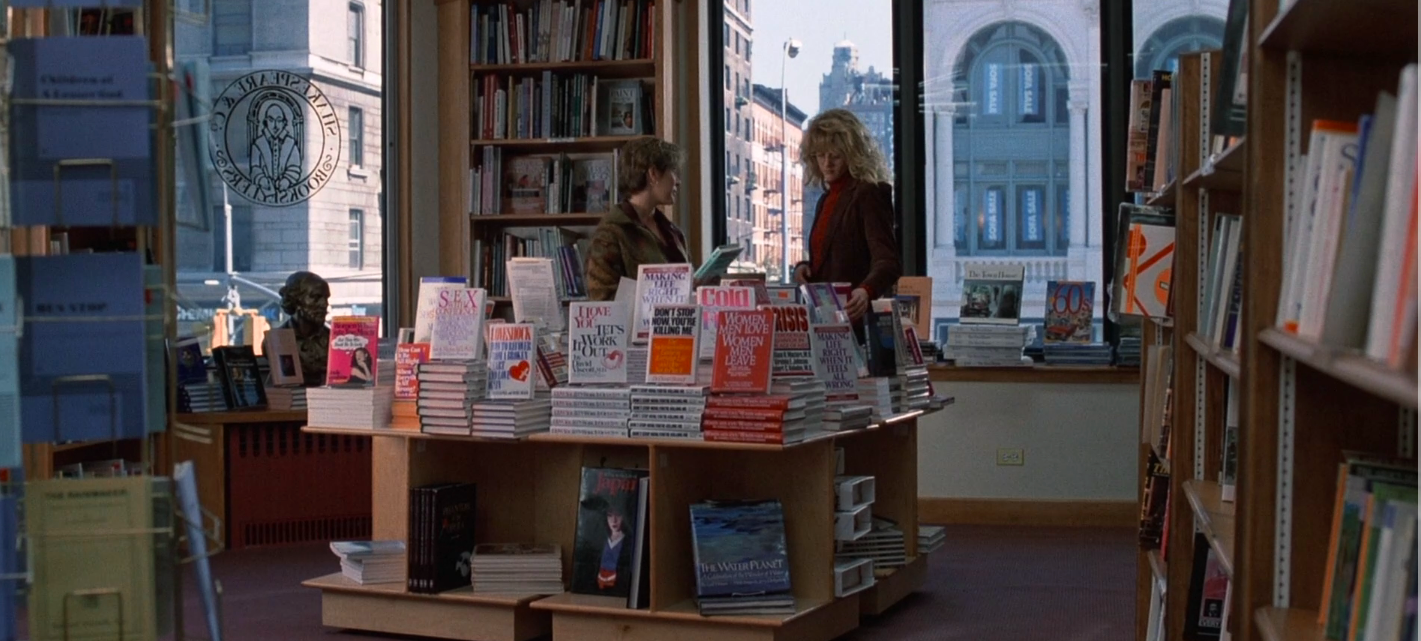 So, I’m watching When Harry Met Sally and there’s the scene where they meet for the third time. Sally and Carrie Fisher are in a bookstore and Harry is staring at them from Personal Growth. And there’s a wide shot of Meg Ryan and Carrie Fisher next to a table full of books and, completely out of instinct, I paused the movie and looked for the pink cover with the confetti. I leaned forward like a reverse Joaquin Phoenix from Signs. I literally thought “Ooh! Maybe my book is here!”