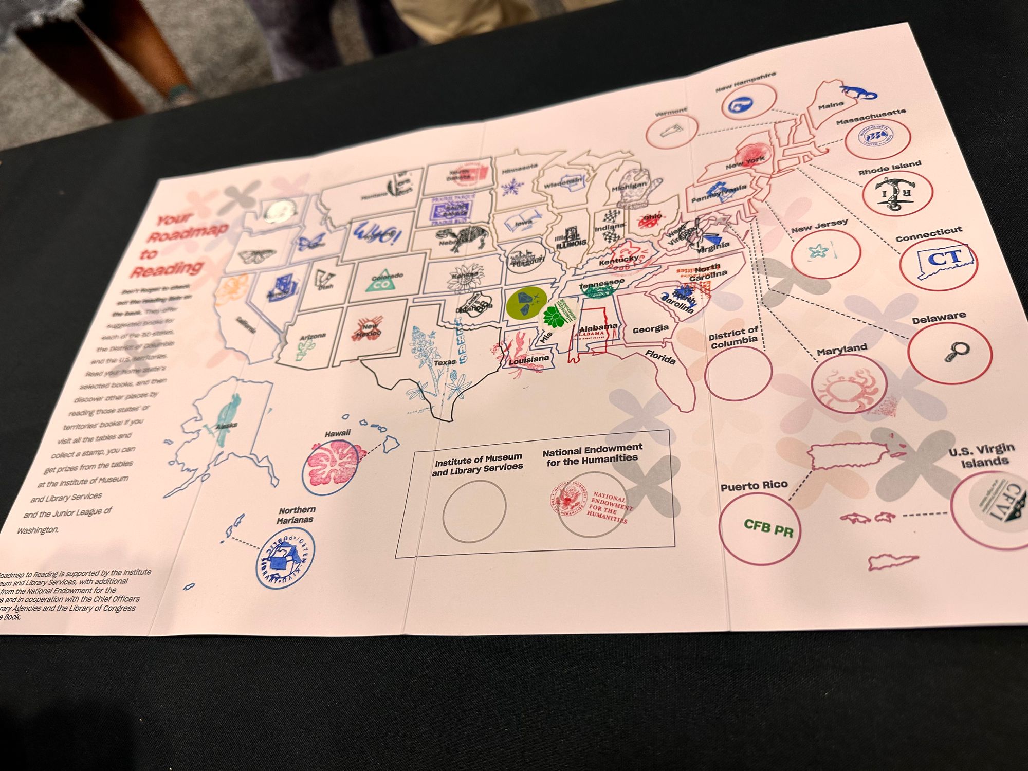 I was thrilled about all of this. When I got there, I found out that another aspect of "Great Reads from Great Places" was a map people were given and told to get stamps from every state and territory's table. Little kids would come up to me and silently foist the map at me and I'd have to say "I'm so sorry; I am unfortunately a person with a Sharpie and not a person with a stamp and therefore I cannot help you. I am very proud of this book but I will confide in you that no one is more embarrassed than I that my life choices didn't lead me to having stamp privileges."