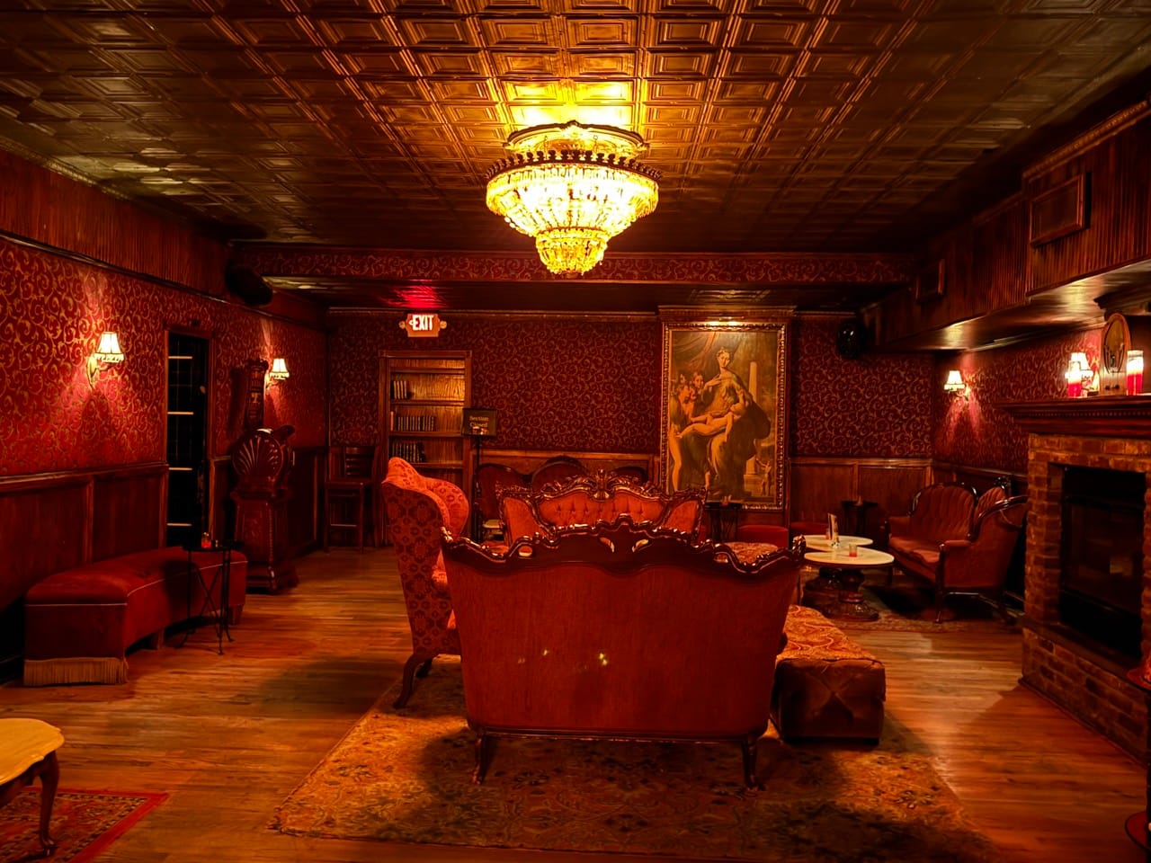 The speakeasy served drinks in tea cups, which is apparently something that they used to do in old speakeasies to throw off the cops. I love the idea of two old timey detectives coming in to a too dark parlor and going "Hmm, Sergeant O'Reilly thought people were drinking giggle water in here but just looks like a cotillion. Our apologies. Say, did anyone see this suspect last night?" And the entire room puts down their tea cups, starts stacking boxes, and begins to deliver exposition.