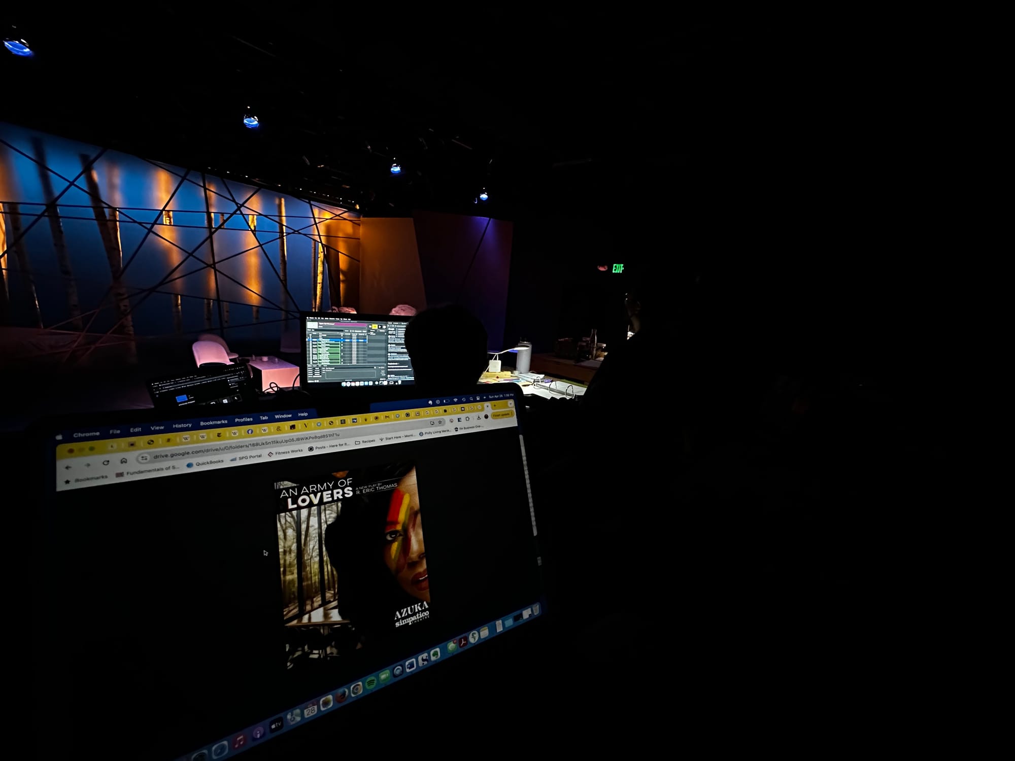 Tech Week is useful for me to be here in a new play process--or even in tech for a play that has been done before--because I learn a lot about my own play. I learn places where I've written things that can better be illustrated using design or places where I've written with one intention and it's been read with another intention. I learn what's possible--literally anything. And I learn what's inadvertantly expensive, lol.
