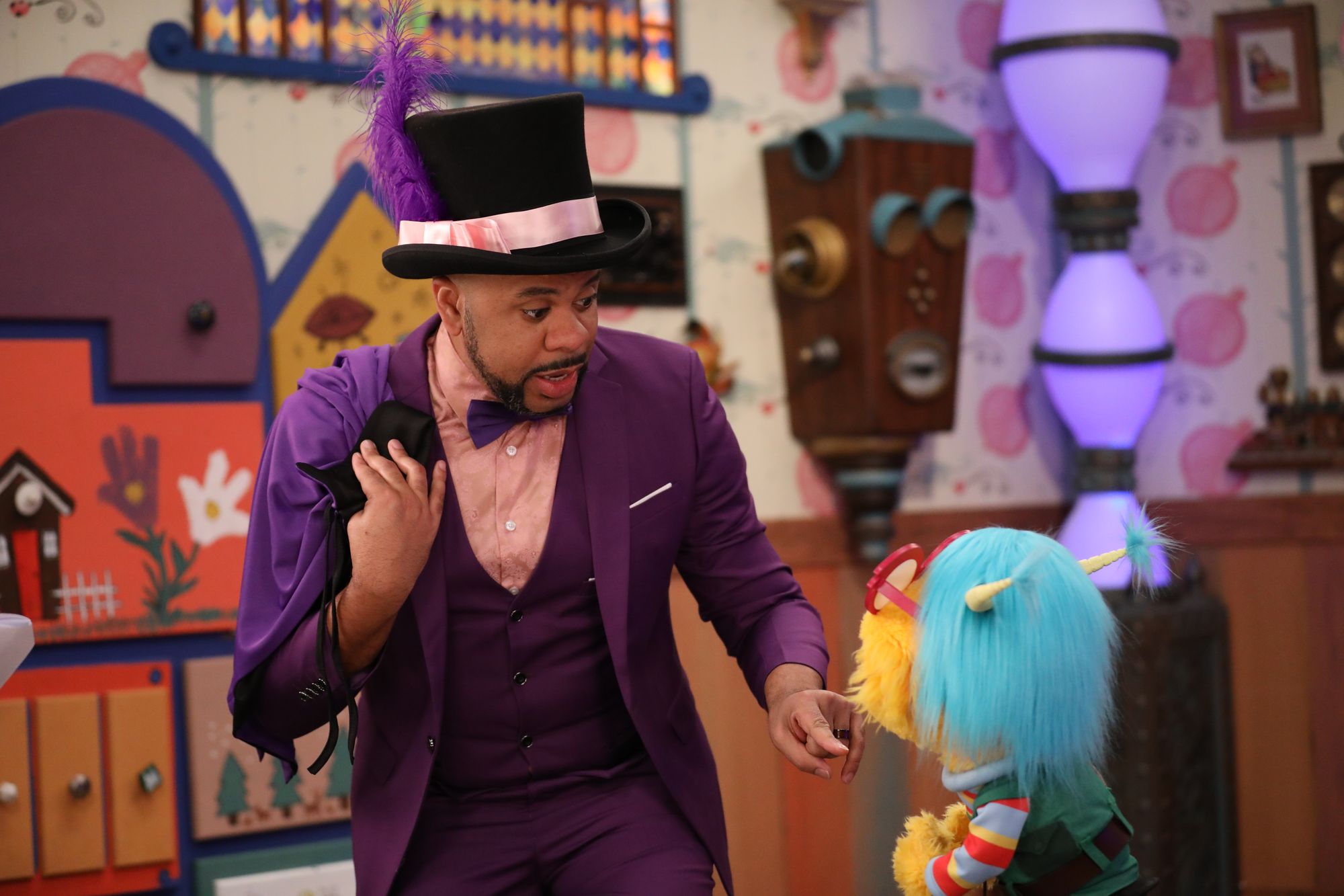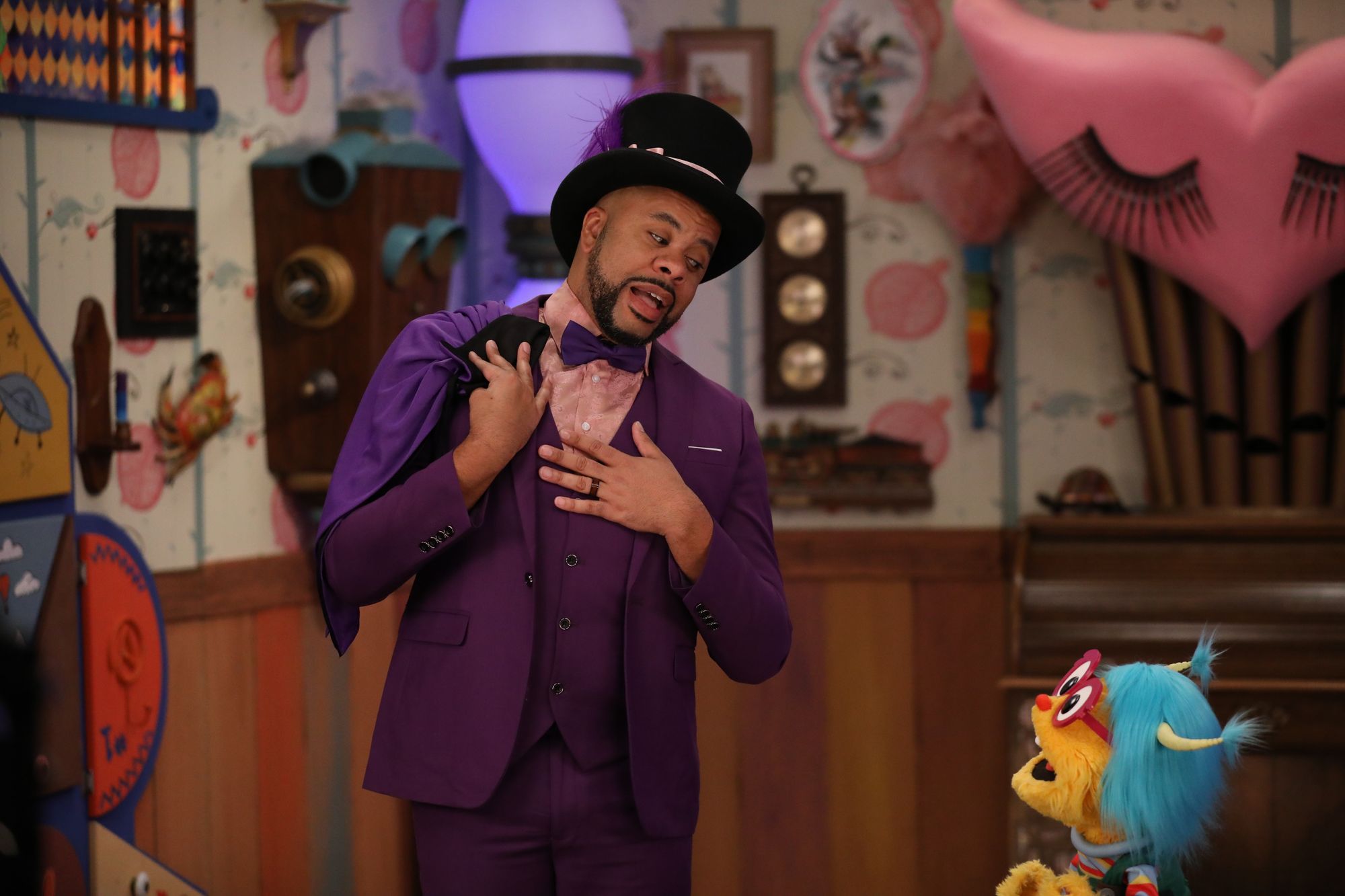 That is, until I got to the studio and met the costume designer and saw her vision for my character. Ricochet was going to be wearing head to toe purple, with a cape and a top hat and (briefly) gloves. Ricochet was giving you full Andre De Shields as The Wiz, he's giving you "magician if personal narrative and self-actualization is the magic you seek". He's giving you PATTI. And I simply burst into tears of joy.